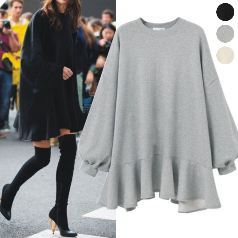 2A11 長袖 トレーナー レディース 秋 冬 オーバーサイズ ゆったり 体型カバー 裾フリル 韓国 トップス カジュアル 大きめ 長袖トレーナー 長袖トップス 韓国ファッション お洒落