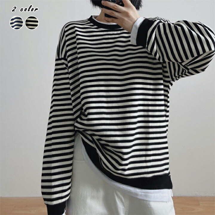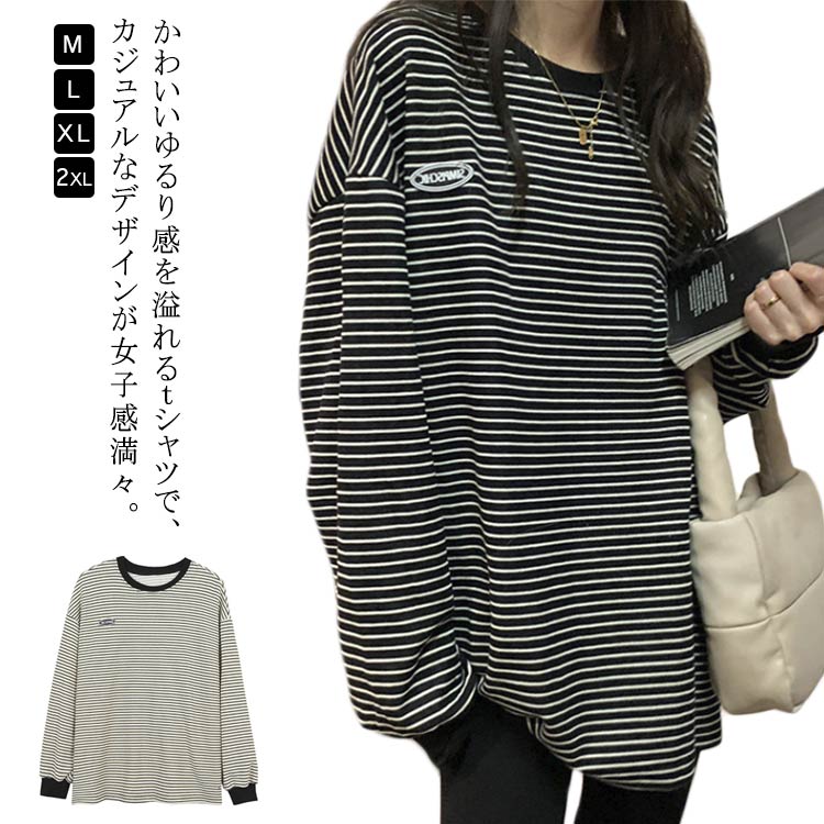 クルーネック シンプル 春 トップス トレーナー スウェット ロンT 長袖 カットソー 大きいサイズ Tシャツ ボーダー 秋 丸首 プルオーバー 部屋着 カジュアル 黒 おしゃれ