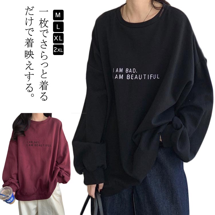 肩開きトレーナー スウェット トレーナー レディース 春 秋 オーバーサイズ ラウンドネック スウェットシャツ