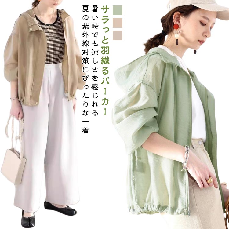 シアーパーカー レディース 長袖 夏 フード シアーブルゾン