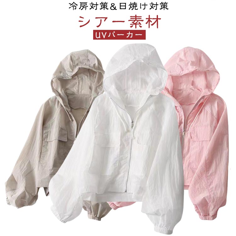 シアーパーカー UVカット 前開き uvパーカー 長袖 薄手 シアーブルゾン 透け感 レディース 夏 サマーカーディガン 紫外線対策 軽い 冷房対策 ショート丈 通学 普段着 ア 通勤