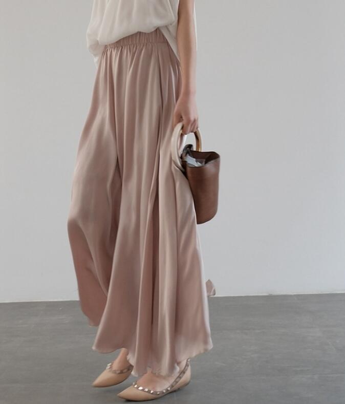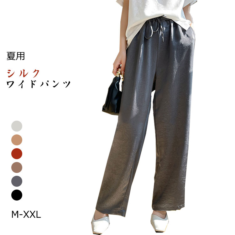 夏 レディース ワイドパンツ シルク 長ズボン 光沢感 サテンズボン 体型カバー 着痩せ シルク風 涼しい おしゃれ 普段着 コーデしやすい お出かけ 通勤 M L XL XXL 6色