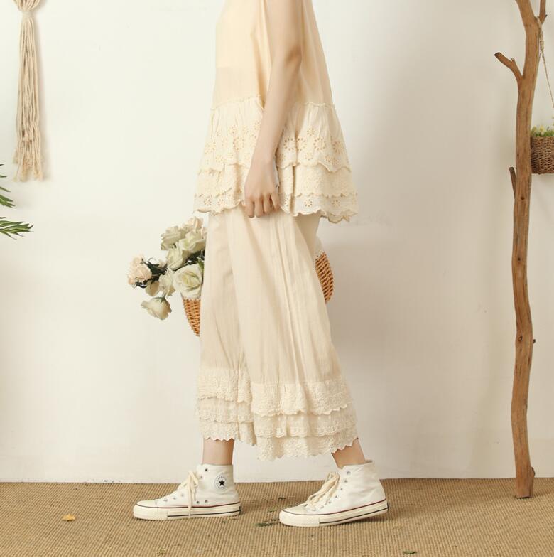 ペチパンツ春秋九分丈ロング丈ボトムス下着レディースレースかわいいナチュラルシンプルコットン重ね着カジュアル大人可愛い森ガール