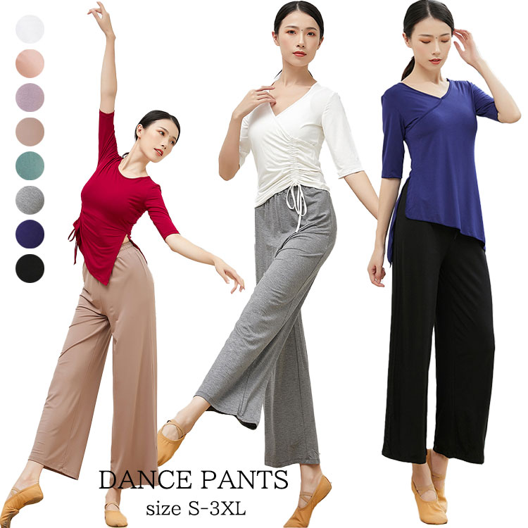 ダンス衣装 練習着 ダンスパンツ ワイドパンツ レディース ダンス用ズボン 8色 ガウチョパンツ 社交ダンス モダンダンス ゆったり レッスン着 ストレッチ性 履き心地いい シンプル S-3XL