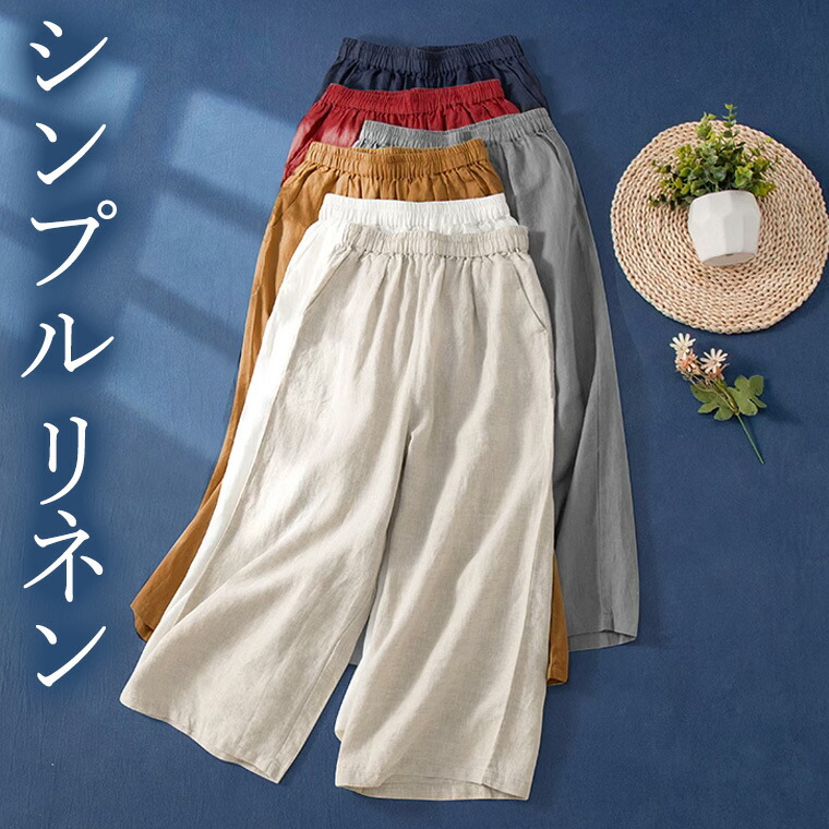 選べるパンツ丈 セミワイドリネンパンツ 40代 50代 9分丈 7分丈 おとな可愛い半端丈 上品シルエットさらりと履ける 重ね着 レイヤード ワンピースと合う リネンパンツ リネン 麻 ペチパンツ ロ