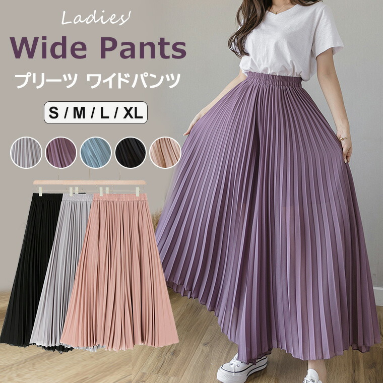 動くたびの揺れ感が印象的 ワイドパンツ プリーツ 美シルエット フレアパンツ プリーツロング丈 ふんわり きれいめ ロング 丈 レディース シフォン