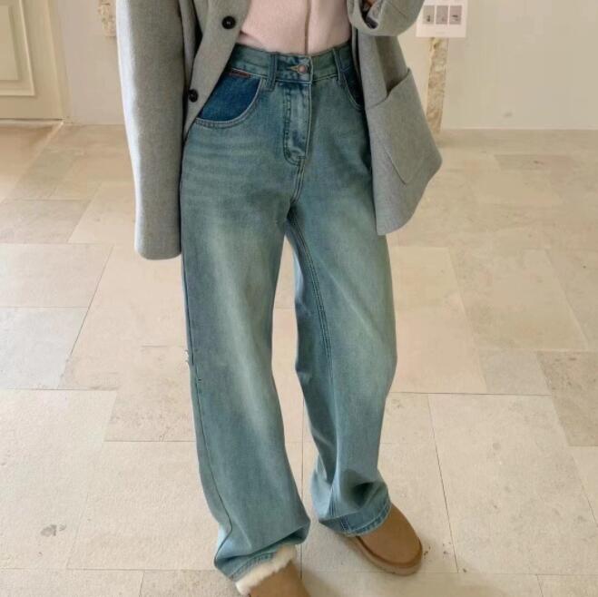 裏起毛 デニムパンツ ロングパンツ レディース ストレート 低身長さん 高身長さん 防寒 カジュアル ワイドパンツ全5色 ゆったり