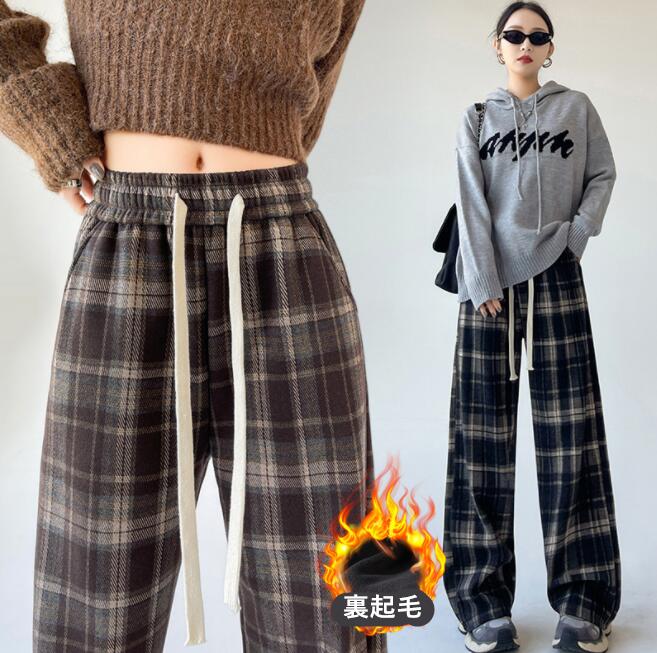 チェック柄ロングパンツ 裏起毛パンツ ワイドパンツレディース 秋冬SNS話題 スウェットパンツ あったか 防寒 裏起毛パンツ 超ロング丈