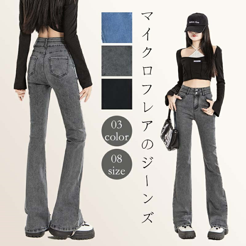 ボトムス ジーパン フレア きれいめ 黒 白 デニムパンツ レディース 大きいサイズレディースファッション ボトムス パンツ