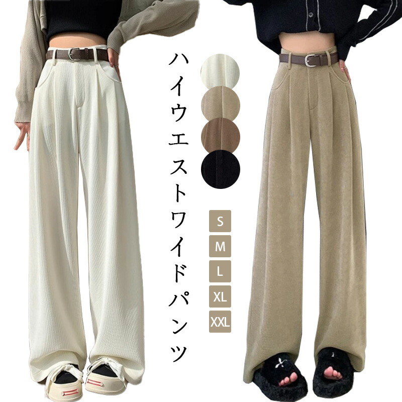 裏起毛パンツ ハイウエスト ストレート ボトムス ワイドパンツ コーデュロイ パンツレディースファッション ボトムス パンツ