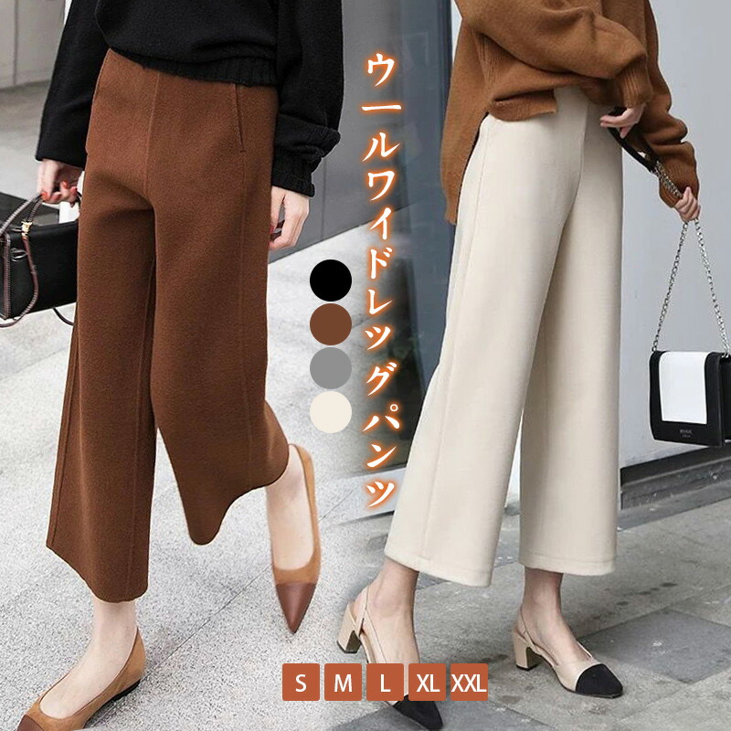 ストレート ハイウエスト ウエストゴム クロップドパンツ ガウチョパンツレディースファッション ボトムス パンツ