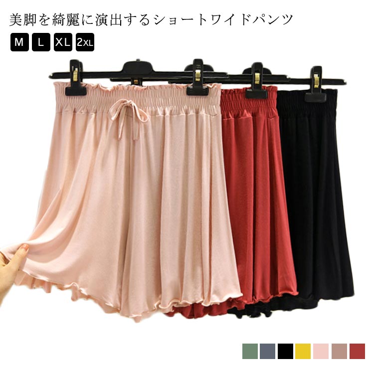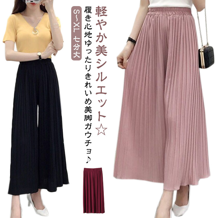 ウエストゴム ガウチョパンツ 七分丈 薄手 美脚 S~XL 涼しい S~XLレディースファッション ボトムス パンツ
