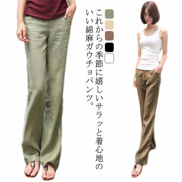 スカートパンツ ズボン 綿 ボトムス ゴム コットン スカートパンツ 夏 ラフ フレアパンツレディースファッション ボトムス パンツ