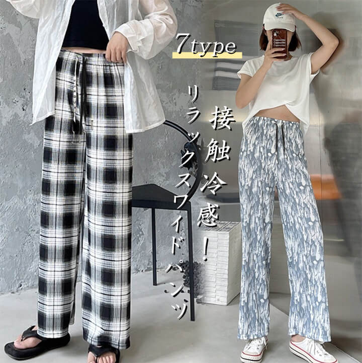 ☆7カラー接触冷感!パンツワイド ひんやり ウエストはゴム仕様で楽ちん