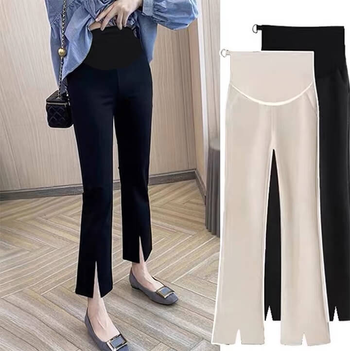 2B39 マタニティパンツ M L XLXXL マタニティから産後も使える ウエストを調節できるアジャスター付き ファッション レディース スリット入り パンツ