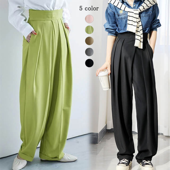 5カラーワイドパンツ タックパンツタイプ 大人可愛いリラックスパンツ♪ 体型カバー