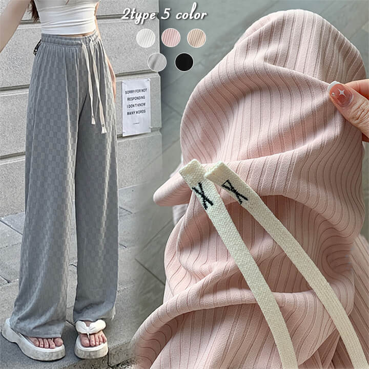 2B4リブワイドパンツ レディース リブニットワイドパンツ ロングパンツ ゆったり ズボン ファッション 総ゴム