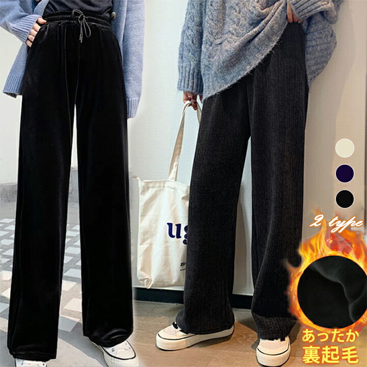 1K 裏起毛極厚 着る毛布 リブ ベロア風 ワイドパンツ 暖か あったか 冬 ボトム リブパンツ おでかけ おうち時間 部屋着 ラクチン 楽ちん バーゲン リラックスパンツ