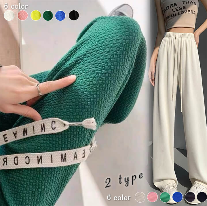 2A20 6カラーリラックスパンツ ストレートパンツ ワイドパンツ ロングパンツ ゆったり ズボン ファッション レディース 総ゴム