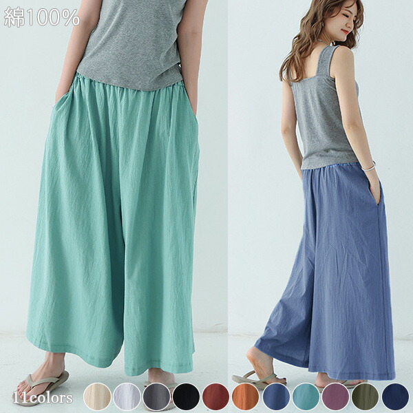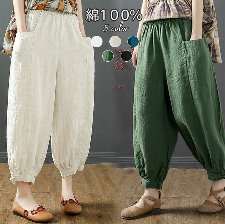 1,000円ぽっきり 2A238カラーレディース 綿 麻 リネン混クロップドパンツ 無地 ゆったり 夏 カジュアルパンツ 薄手 リネンパンツポケット付き 大人 春夏 バーゲン シンプル
