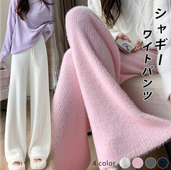 シャギーワイドパンツ かわいい お出かけ オフィス 通勤 通学 動きやすい 普段着 デイリー 体型カバー