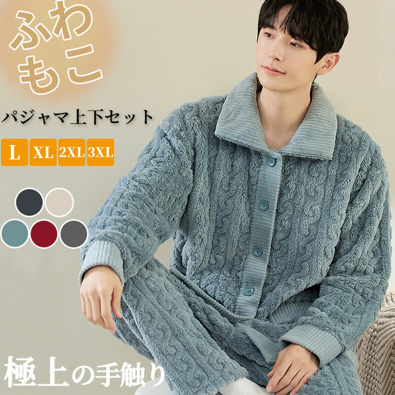 パジャマ メンズ もこもこ ルームウェア 上下セット 大人 厚手 冬 ふわふわ 大きいサイズ セットアップ ナイトウェア 冬用 あったか 前開き 長袖 ボアフリース 部屋着 ロング丈 寝間着 お風呂上