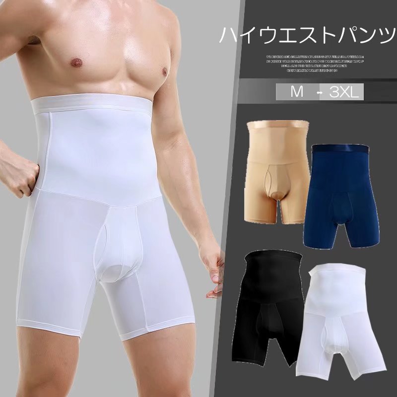 引き締めてスリムなボディをメイク メンズ 男性用 ハイウエストパンツ 腹巻 ボクサーパンツ 補正下着 加圧下着 インナー 肌着 ヒップアップ ストレッチ 前開きパンツ
