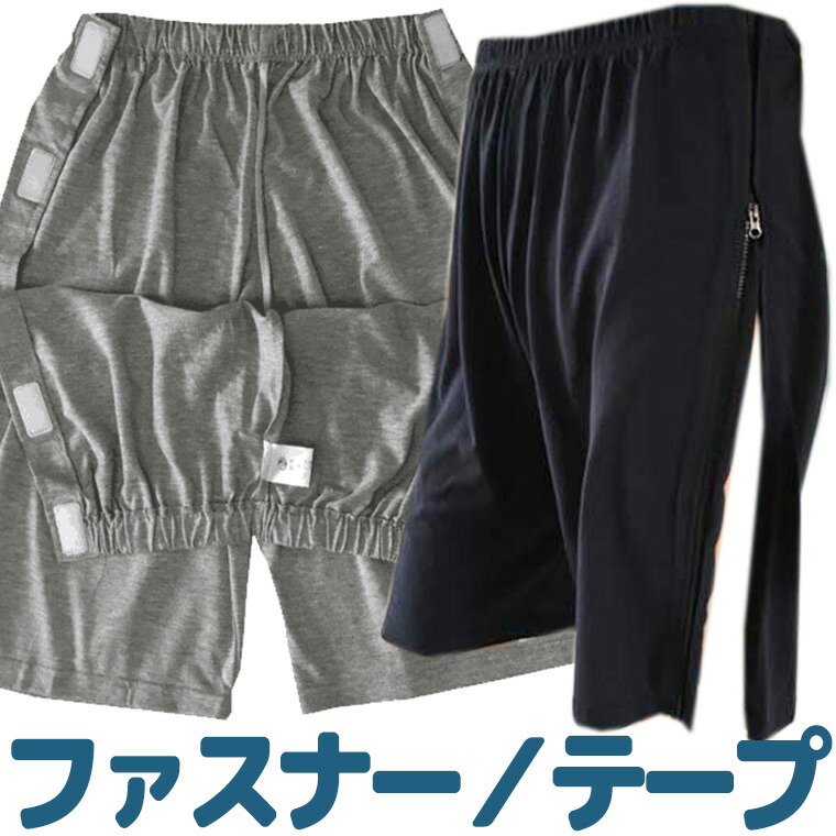 着せやすい 脱がしやすい 介護用 パジャマ パンツのみ ショートパンツ ハーフパンツ 夏用 マジックテープ ファスナー メンズ 男性