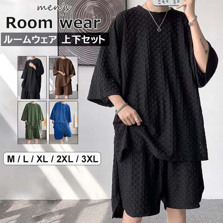 旬なゆったりとしたシルエットでこなれ感♪上下セット セットアップ Tシャツ ハーフパンツ 接触冷感 半袖 メンズ 夏 スポーツウェア ルームウェア 部屋着 大きいサイズ 2点セット