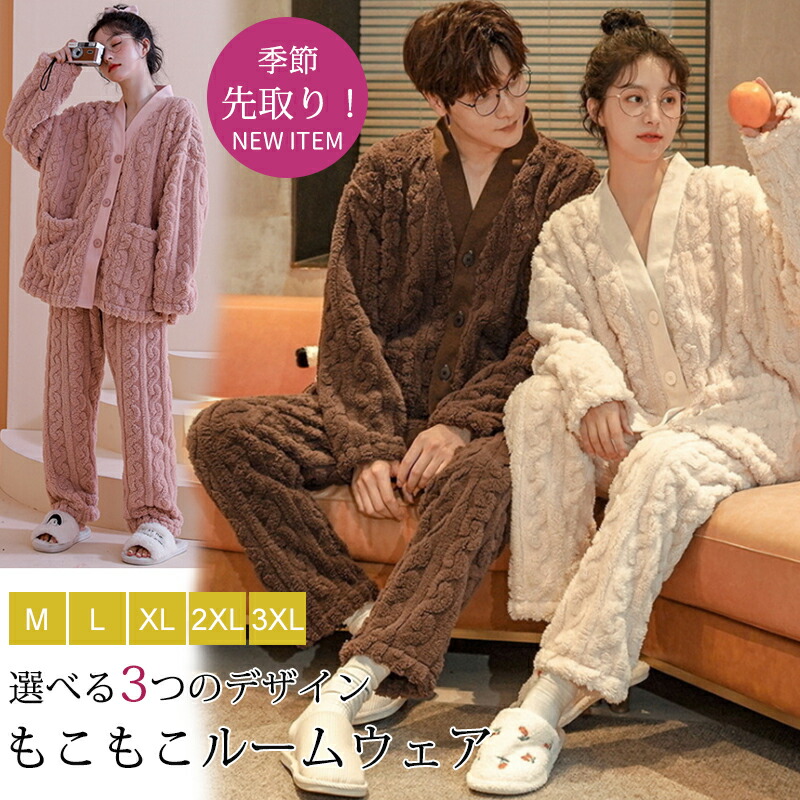 ペアパジャマ ルームウェア カップルパジャマ 3TYPE メンズ レディース もこもこ 裏起毛 ふわふわ パジャマ 上下セット 寝巻き あったか 厚手 ゆったり 恋人 ご夫婦 お家 部屋着 春 秋 冬