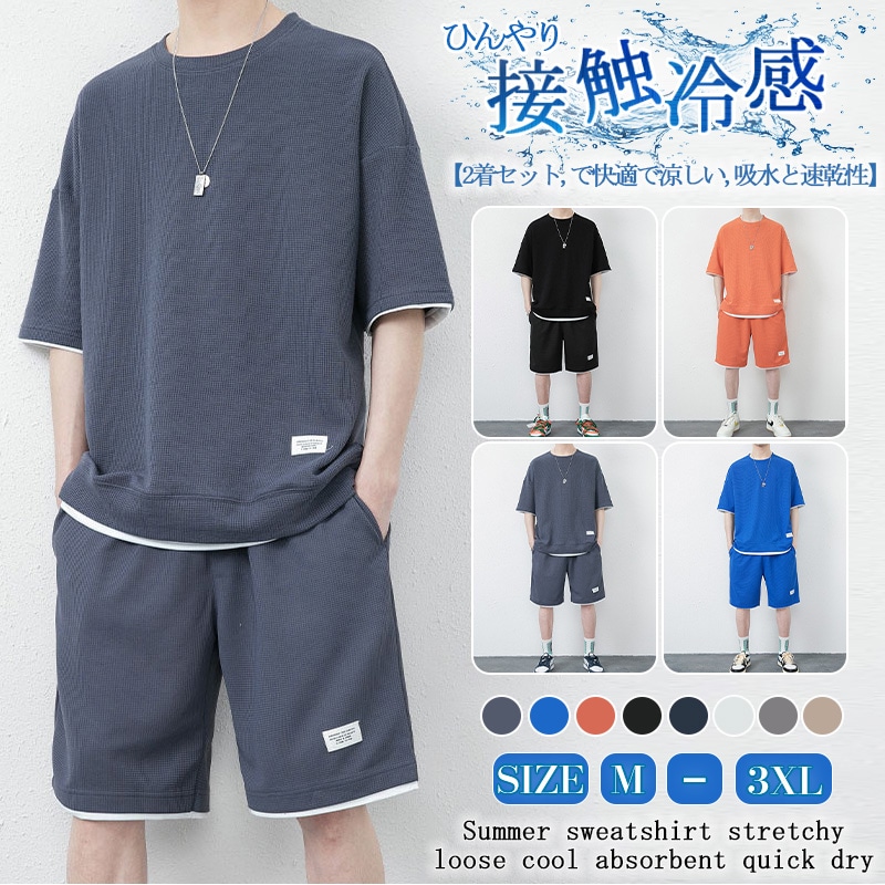 セットアップ スウェット 半袖 スポーツ 部屋着 ルームウェア 夏服 冷感 tシャツ ハーフパンツ 上下 セット 無地 通気 メンズ 上下セット カジュアル シンプル スポーツウェア 大きいサイ