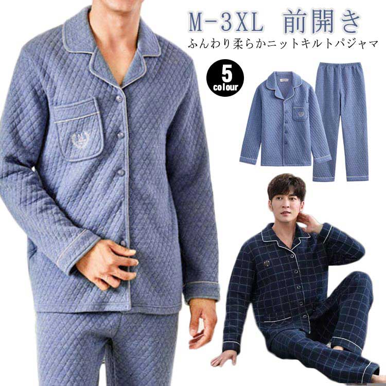 ニットキルト あったか パジャマ 前開き ルームウェア 部屋着インナー 下着 ナイトウェア メンズ ナイトウェア ルームウェア パジャマ