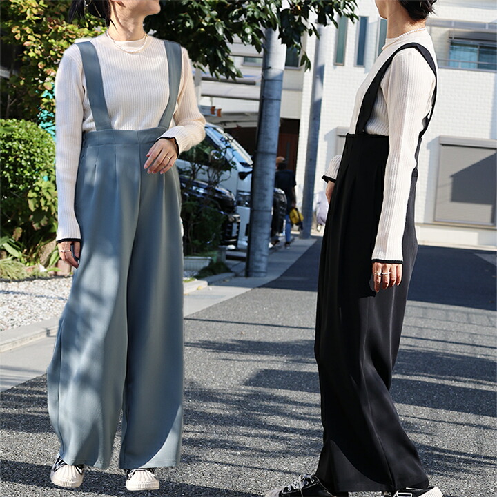 2A19 キーネックワイドサロペット レディース オールインワン ワイドレッグ オシャレ カジュアル ワイドレッグパンツ サロペット 韓国ファッション ストリートファッション