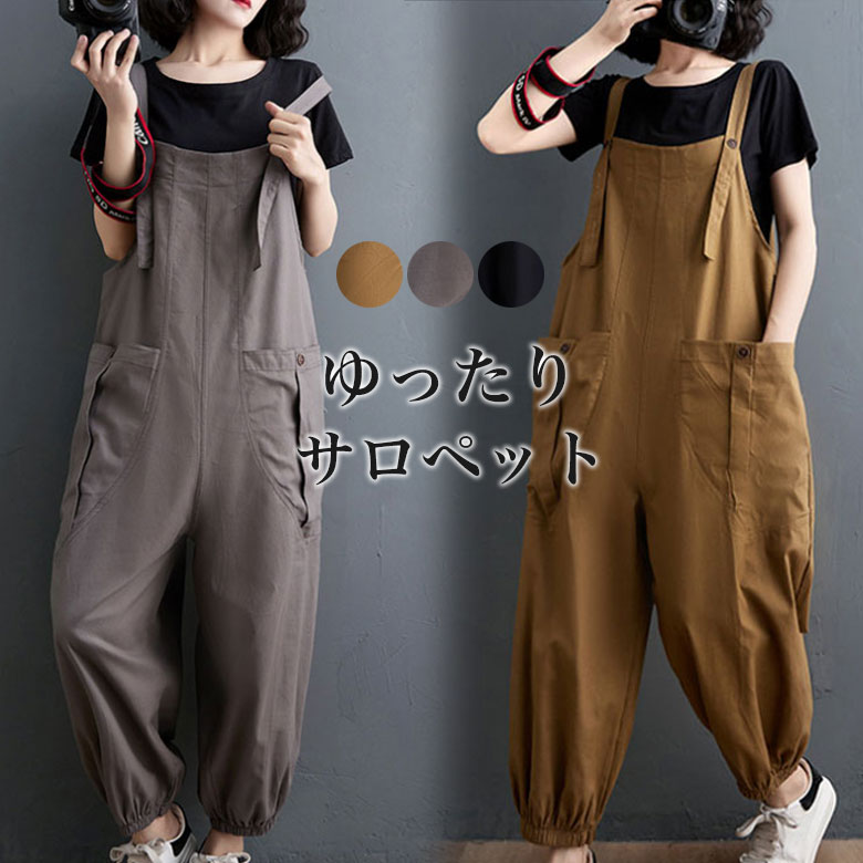 -2サイズ ゆったりサルエル風 くすみカラー 40代 50代 サロペ