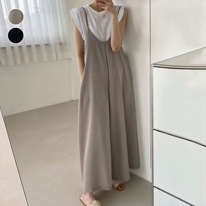 レディース サロペット ワイドパンツ マキシ キャミソール カラバリ カジュアル こなれ感 ルーズ 抜け感 春 夏 秋 ママ 学生 アウトドア リゾート 旅行 ビーチ 公園 高原 ガーデン 大 女子会