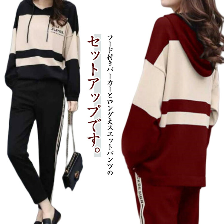 ジャージ レディース 2点セット ロングパンツ フード付き