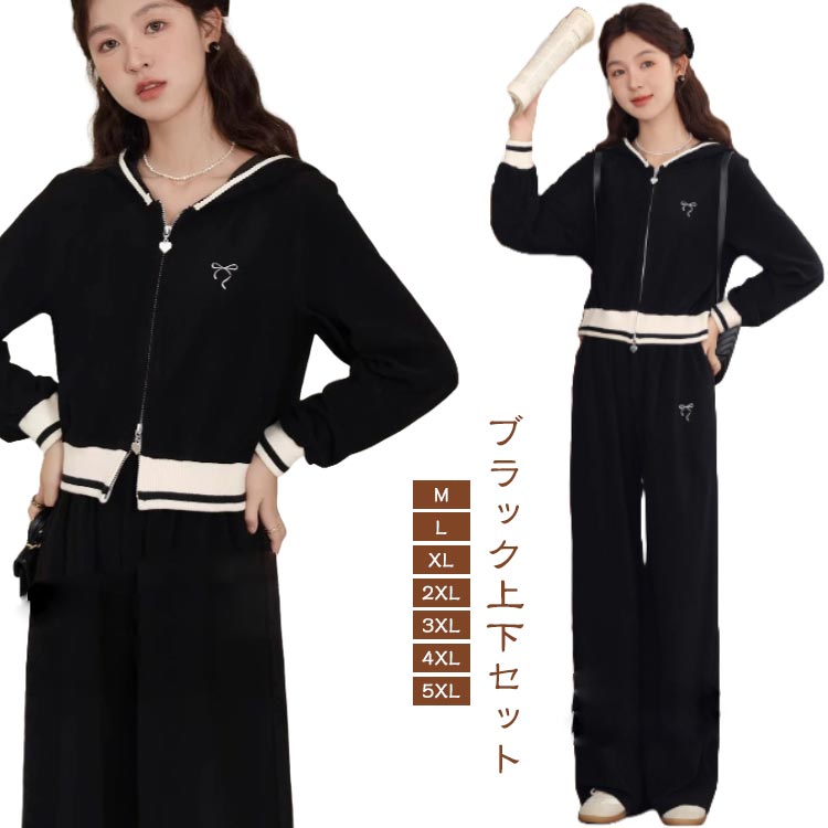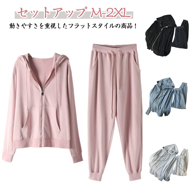 ロングパンツ レディース ゆったり ジャージ 2点セット フード付き 上下セット お洒落 ジップパーカー 部屋着 セット カジュアル スウェット 無地 韓国 ルームウェア