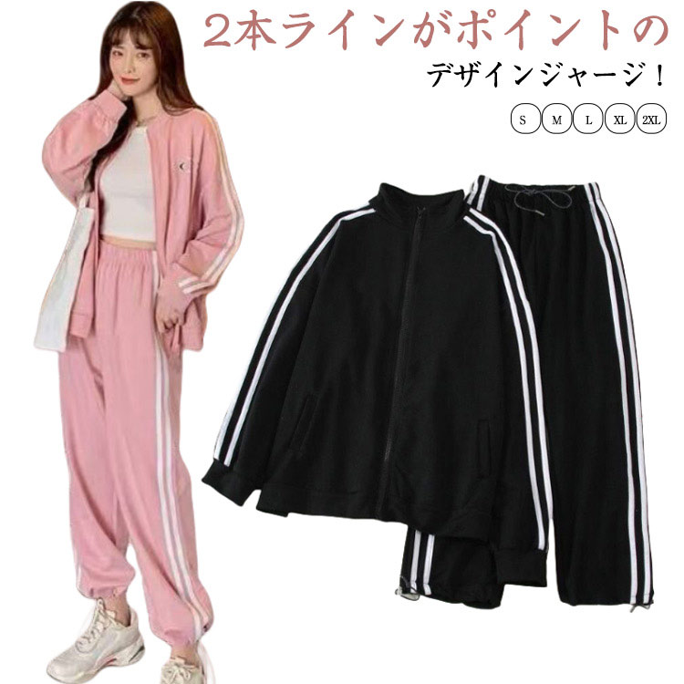 ジャージ 春 レディース ライトアウター ジャケット 上下セット 部屋着 秋 2本ライン 長ズボン 2点セット ゆったり おしゃれ スポーツウェア ジップアップ ロングパンツトレーニングウ カジュアル