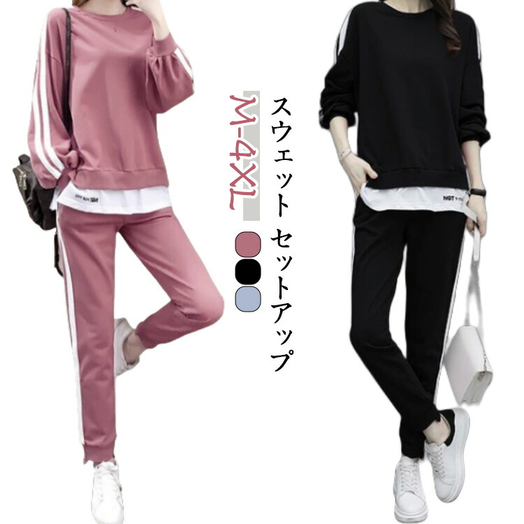 セット 長袖 大きい レディース 秋 ジャージ スウェット パンツ 大きいサイズ 春 ライン スウェットパンツ 冬 上下 オシャレ ルームウェア 夏 可愛い トップス 部屋着 修学旅行 薄手