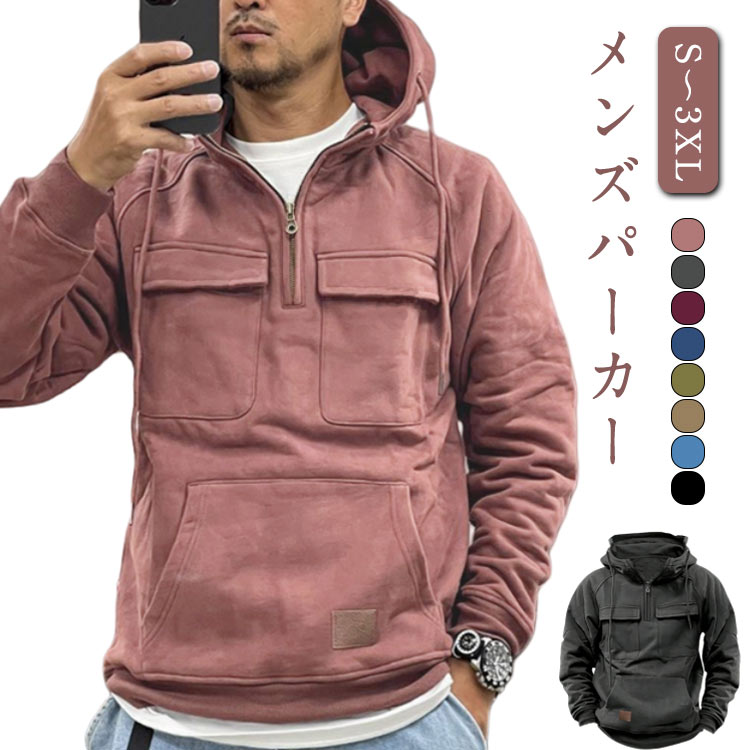 ジップアップ ハーフジップ 登山 カジュアル パーカー おしゃれ アウトドア 防寒 マウンテンパーカー 紳士服 春秋冬 メンズ メンズファッション フード付き 無地 プルオーバー お釣り 秋冬 作業着