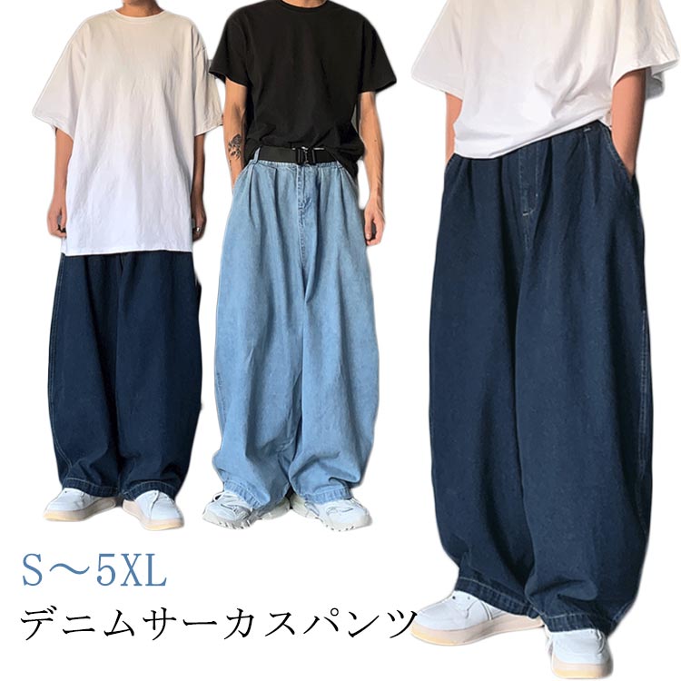 ~5 ワイドパンツ デニム 体型カバー ゆったり 男女兼用 ジーンズ