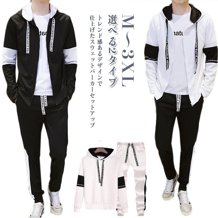 スポーツウェア セットアップ プルオーバー スエット上下セット フード付き ジャージ 大きいサイズ 前開き 2点セット トレーニングウェア パーカー 長袖 ジョガーパンツ メ スウェット