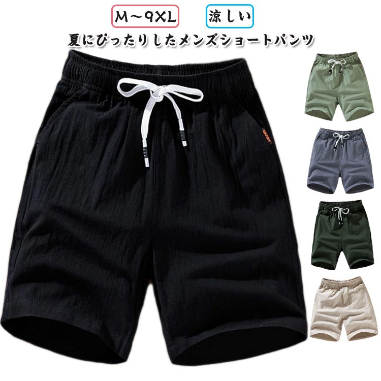 ~9 綿麻ショートパンツ メンズ カジュアル ウエストゴム 涼しい 夏服