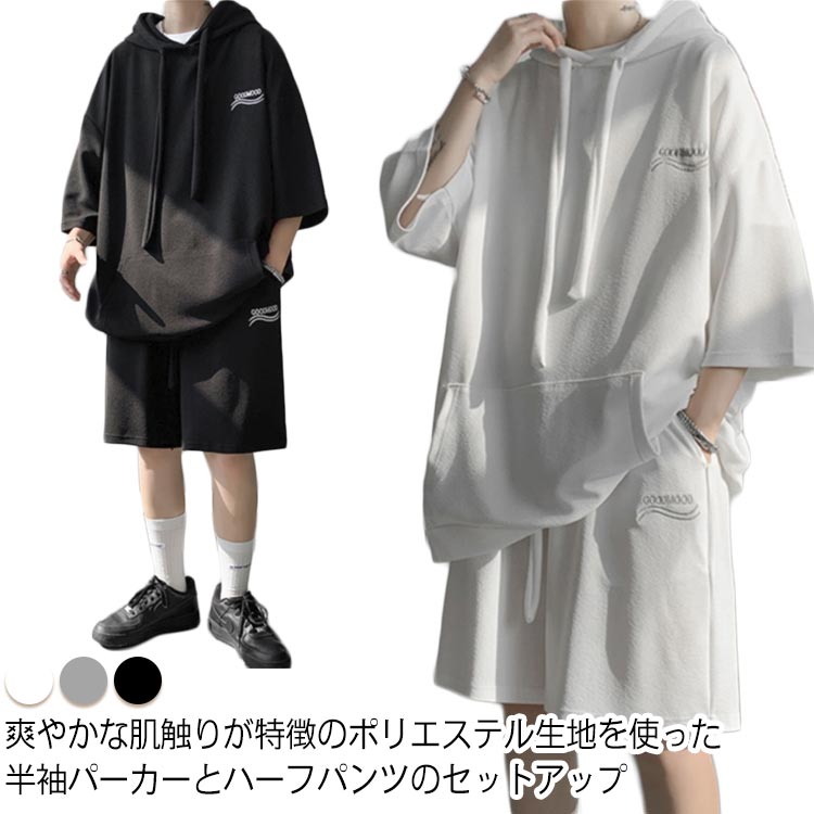 ジャージ 短パンツ ゆったり ルームウェア カジュアル上下セット パーカー メンズ 半袖 薄手 接触冷感 カジュアル スウェット上下セット ダンスウェア パジャマ セ 2点セット
