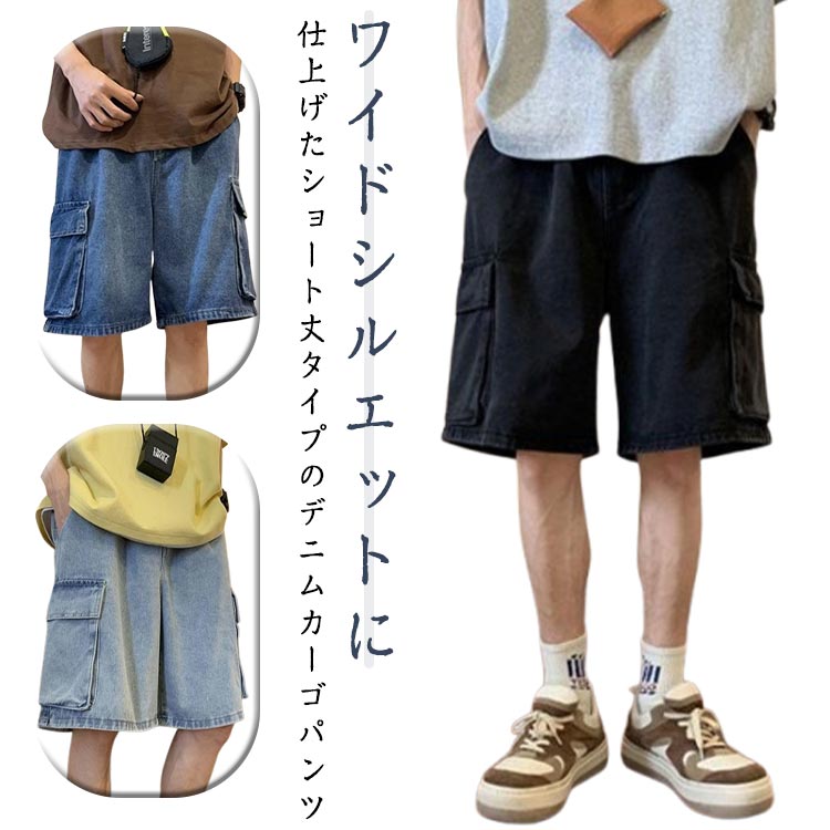 ボトムス メンズ デニムパンツ ハーフパンツ ズボン ワイドパンツ ショートパンツ デニム 夏 カジュアル ジーンズ ポケット付き 五分丈 カーゴパンツ 半ズボン デニ おしゃれ