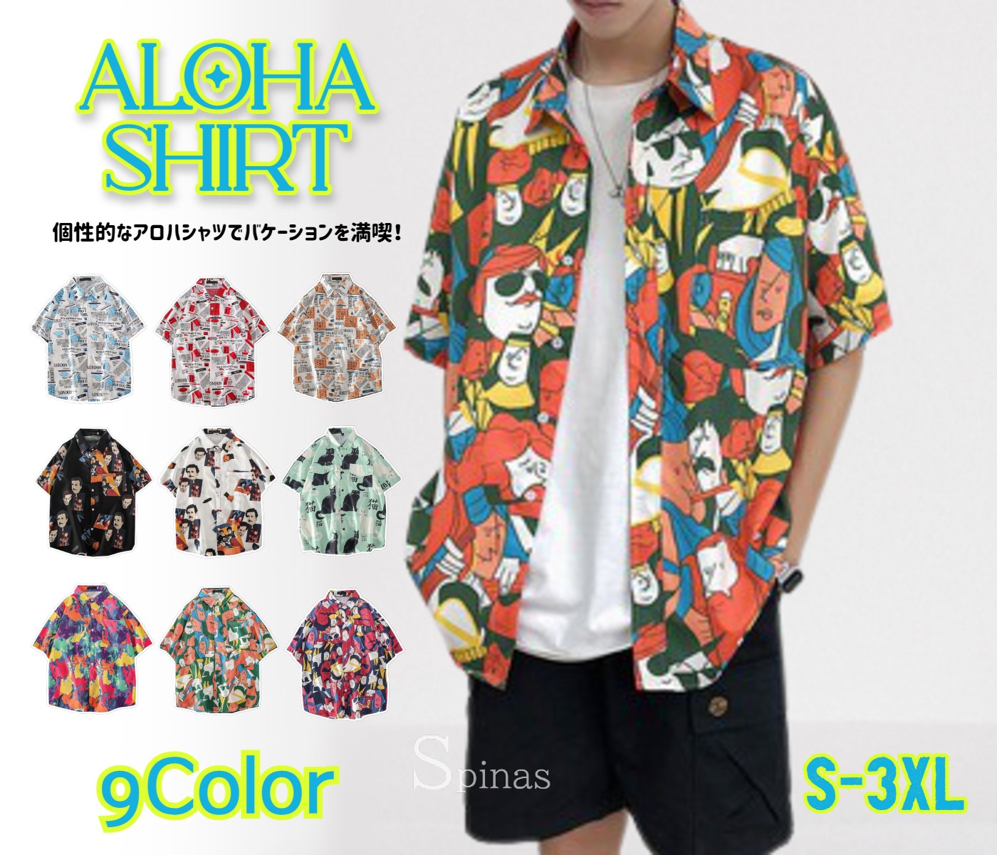 個性的で格好いい アロハシャツ 男女兼用 メンズ レディース 半袖 顔 猫 タイダイ柄 英字 ハワイアン シャツ カジュアル ユニセックス S M L XL 2XL 3XL