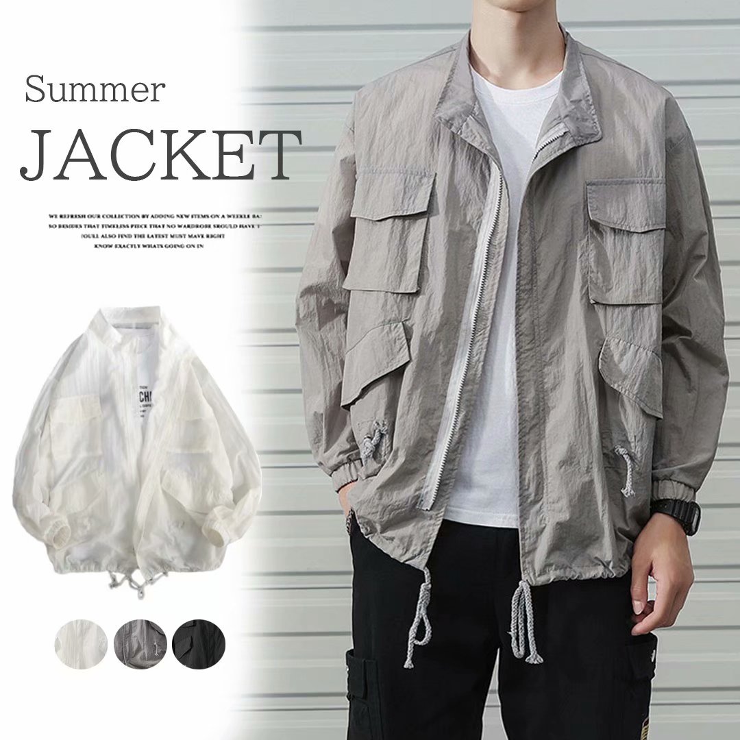 夏でも羽織れる メンズ サマージャケット ブルゾン UV対策 ジャンパー ゆったり プルオーバー 薄手 夏物 ポケット