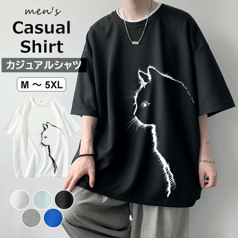 合わせやすい 夏 Tシャツ メンズ 大きいサイズ M~5XL 五分袖シャツ 猫柄 半袖 メンズファッション ストリート系 トップス 夏服 カジュアル ゆったり 動物柄 ラウンドネック プルオーバー