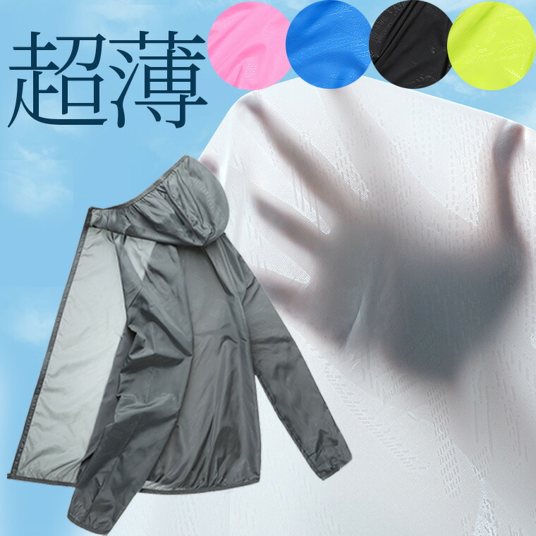超薄手 男女兼用 ~4まで 収納ポーチ付 無地 ウィンドブレーカー 長袖で日差しや虫を防ぐ 大きいサイズ シンプル 通気性 防水