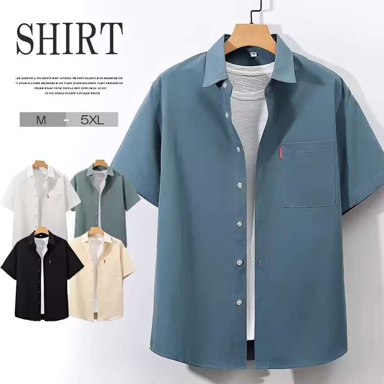 軽快でスタイリッシュ 大きいサイズ メンズシャツ 無地 ブラウス 半袖 前開き ワンポケット 体系カバー Yシャツ 大きめ カジュアルシャツ 開襟シャツ 冷感 涼しい